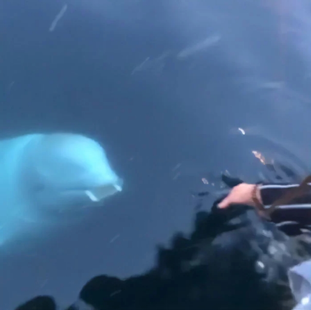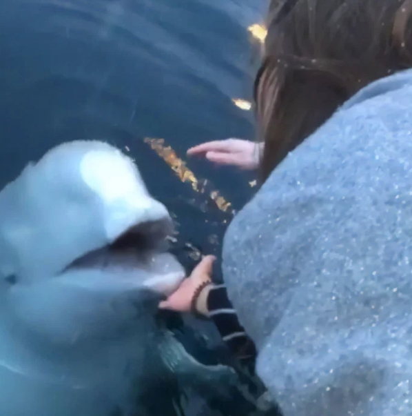 Suite à une virée plongeant dans l’océan, la jeune femme perdit son téléphone dans l’eau, car il avait glissé de ses poches. Peu de temps après un beluga est apparu à côté de son navire avec son portable dans la bouche.