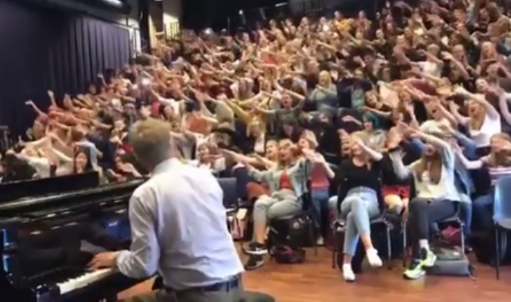 Cette vidéo donne des frissons. Un professeur demande à ses élèves de choisir une chanson pour une rentrée dans la bonne humeur. Le choix tombe sur « Bohemian Rhapsody » de Queen. Cette idée spontanée a donné un excellent résultat : débuter dans une ambiance remplie d’enthousiasme. Ces élèves du lycée Rud en Norvège ont eu un grand plaisir à chanter ce morceau, accompagné par leur professeur Ystein Fevang au piano. Il a juste joué les premières notes et les lycéens ont suivi sans problème en chantant, de quoi donner chaud au cœur !