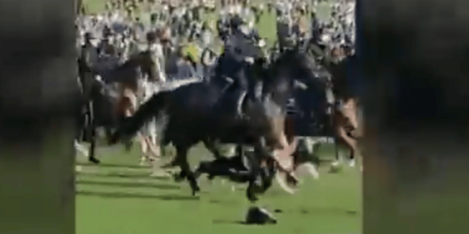 Une femme a notamment été percutée volontairement par des policiers à cheval. On peut voir sur ces images d’une violence extrême et gratuite.