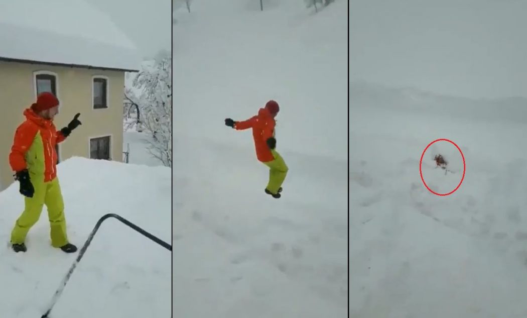 Un groupe d’amis vivant là-bas ont démontré dans une vidéo l’immense quantité de la neige tombée. Un d’eux a sauté dedans et on ne peut littéralement plus le voir.