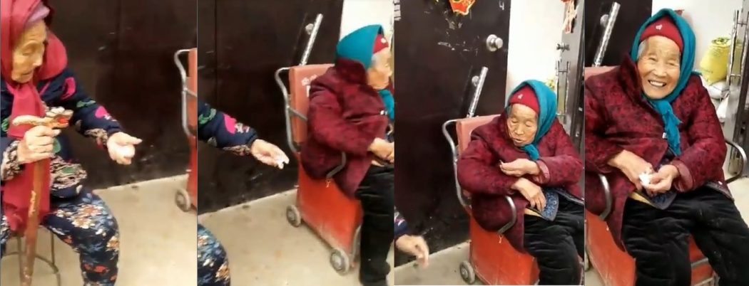 La vidéo a été partagée par People’s Daily China sur Twitter avec une légende « L’enfant le plus heureux du monde ! Une mère de 107 ans a donné à sa fille de 84 ans un bonbon que la mère a repris d’une cérémonie de mariage ».