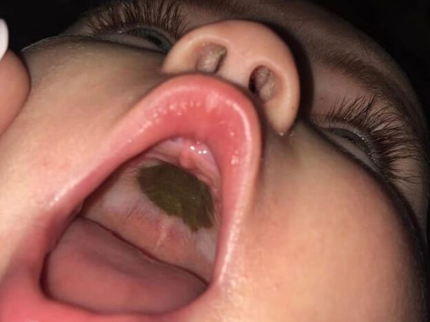 Les médecins ont été laissés perplexes lorsqu’un bébé a été introduit avec une mystérieuse marque noire sur le palais de sa bouche.