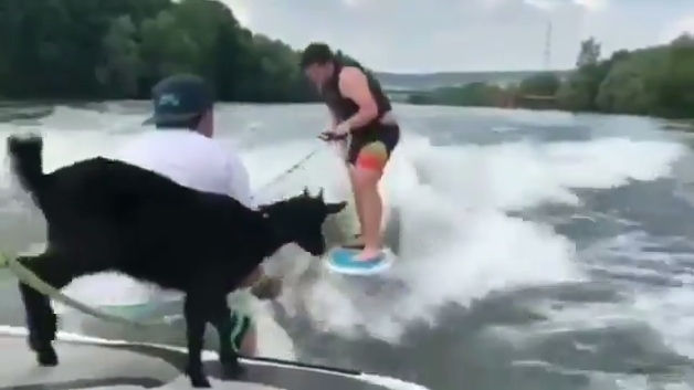 Voici ce qui arrive quand on décide d’embarquer une chèvre lors d’une séance de wakeboard.