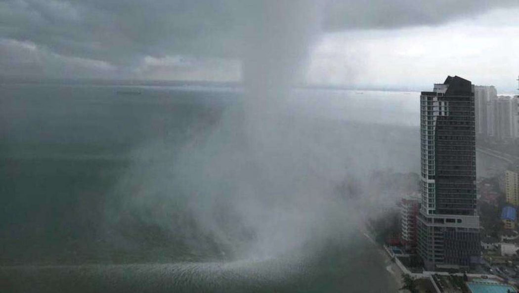 « Les habitants de Penang pensaient que c’était une tornade. Non, ça ne l’est pas ! C’est une trombe marine ! Ce phénomène s’est produit aujourd’hui. Plutôt effrayant ! »