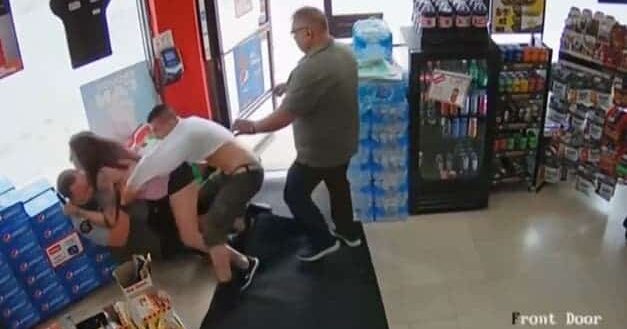 OUCH ! Une prétendue tentative d’utilisation d’une carte de crédit volée a mené à une poursuite chaotique dans une supérette au Canada, incluant une femme tombant à travers le plafond.