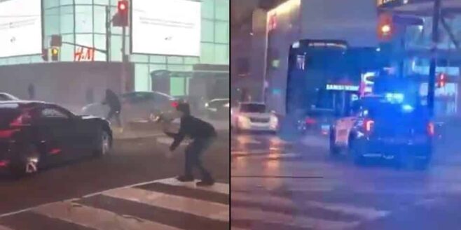 Dans cette vidéo, un conducteur réalise un drift en pleine rue. Les gens qui sont présents ont filmé la scène. À la fin de la séquence, une voiture de police a interrompu le spectacle. Le véhicule s’est arrêté et a pris la fuite. La police l’a suivi.