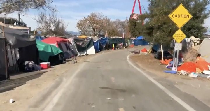 Vidéo choc qui montre le long de la rivière Santa Ana en Californie du Sud avec l’une des plus grandes communautés de sans-abri du pays.