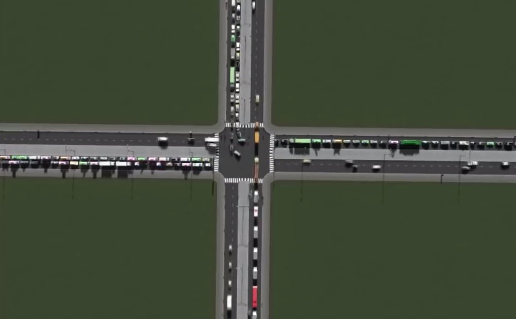 Découvrez dans cette vidéo le débit de trafic mesuré sur 30 différents carrefours à 4 voies différentes en version accélérée.