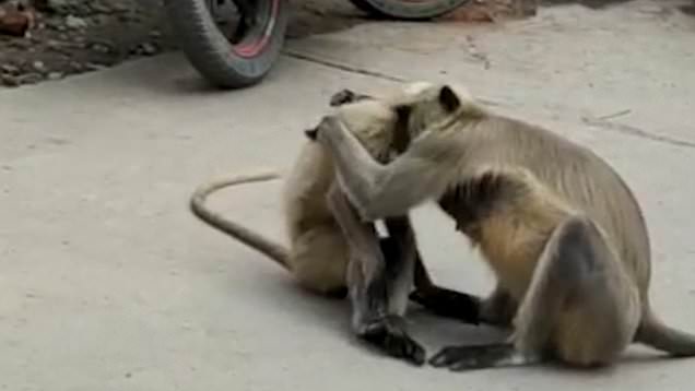 Des images émouvantes montrent un singe en train de consoler et de câliner son ami qui vient d’être sauvé d’un poteau électrique.