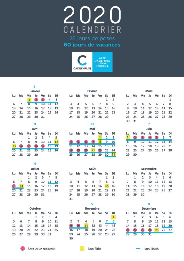Vous serez sûrement plus enthousiaste pour 2020. Les travailleurs peuvent se réjouir avec 9 jours fériés et les 13 longs week-ends de cette année bissextile. Avec seulement 25 jours de congés payés bien placés, vous profiterez pleinement de 60 jours de vacances. Avec ce calendrier bien pensé, place à la liberté, avec un programme détente pour vous amuser et profiter de votre passe-temps préféré. Mais c’est aussi l’occasion de concrétiser vos projets.
