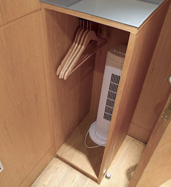La garde-robe peut aussi servir de rangement ou de débarras apparemment. Au moins le linge ne risque pas de se froisser.