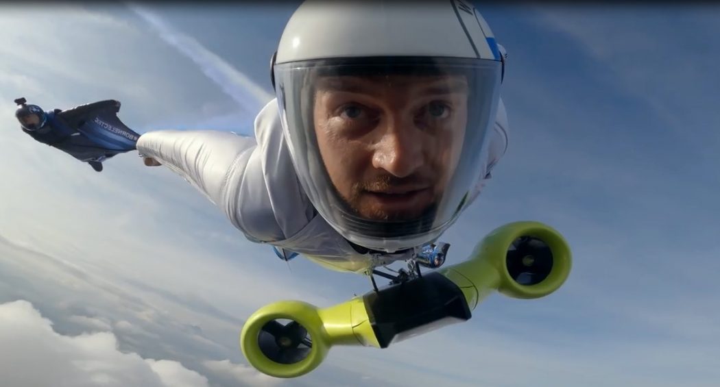 Ce pilote et base jumper s’est associé avec BMW pour pourvoir repousser les limites de l’homme dans le vol à l’air libre. Il a fallu trois ans de recherches et de tests avant d’arriver à ce résultat ou le wingsuit se trouve muni d’un moteur électrique.