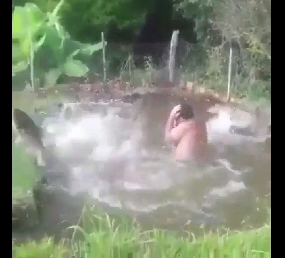 La façon, comment il a pu attraper un nombre important de poissons, est juste étonnante ! Il n’a fait que agiter un peu l’eau avec ses deux mains et quelques secondes après des grands poissons ont commencé à se jeter en dehors du lac, seuls !