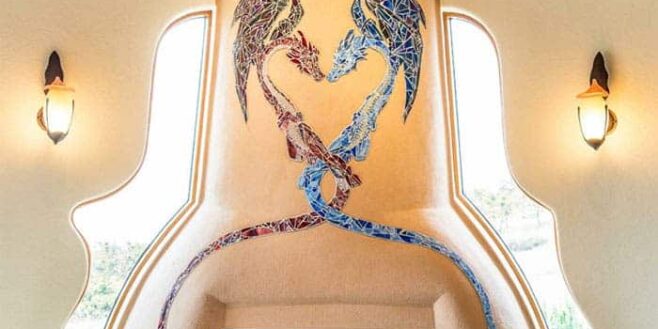 D’autre part, les dragons en mosaïque de style feu et glace sont l’un des éléments les plus complexes de la demeure. Les deux dragons sur la cheminée ornent parfaitement l’espace qu’ils occupent. En outre, les planchers d’érable et de cerisier donnent l’illusion d’un ruisseau qui coule.