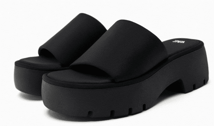 Zara a aussi dévoilé une paire de sandales compensées qui ont un bout ouvert et rond ainsi qu’une sangle épaisse sur le devant. De couleur noire, vous pouvez les trouver du 35 au 42. Leur prix est de 35,95 euros.